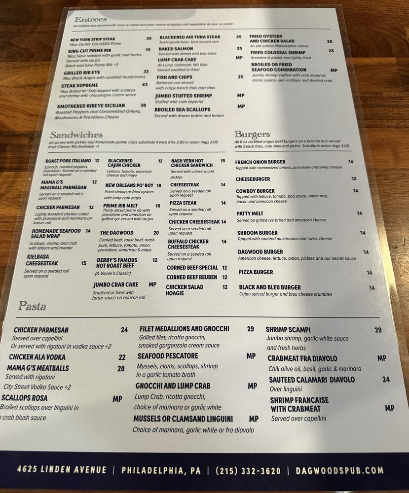 Located in Philadelphia, Dagwood's Pub is a lively seafood pub offering a wide range of amenities, including delivery, takeout, outdoor seating, and live music. Known for its bustling atmosphere on Friday and Saturday nights, the pub boasts a full bar, pool table, and TV for sports enthusiasts. Customers rave about the mouthwatering seafood dishes, such as the seafood combo and broiled/fried options. The menu also includes vegetarian choices and delectable options like steak with gnocchi in a creamy sauce. Reviewers praise the exceptional service from staff like Ozzy and Tim, making dining experiences memorable. Despite being packed at times, the quality of food and service at Dagwood's Pub keeps patrons coming back for more. If you're looking for a fun, casual dining spot with delicious food and great company, be sure to check out Dagwood's Pub.